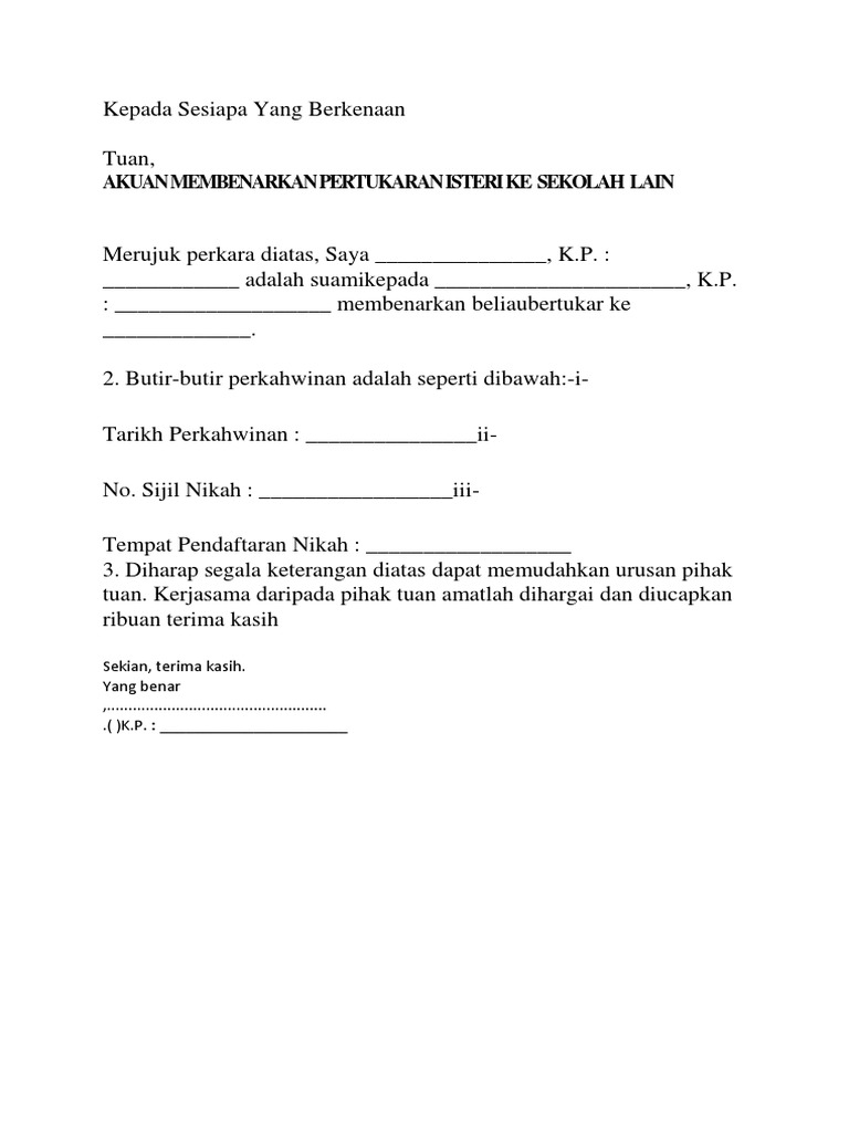 Contoh Surat Kepada Sesiapa Yang Berkenaan Pdf